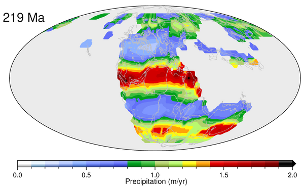 Modelling global precipitation since 250 million years ago